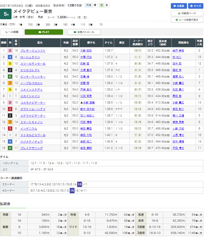 このレースも本命・押さえの買い目があり出費した馬券代は2万400円、新馬戦に続く敗戦でトータル4万800円の負けだ。