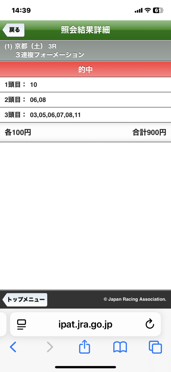 展開が噛み合ったのをそのまま馬券に落とし込んで127万。点数絞ってこの配当は素直に嬉しい。