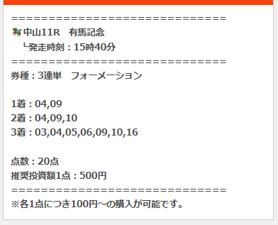 またまたあーるさんにーの無料予想でそこそこいい配当貰えました。 これだけ稼がせて貰えてるんだからもうここの予想で100円でなんか買えません、だって勝てるから。 今回も1点千円で8万2700円の払い戻し。 100円で買って8千円の払戻しを選択するか、資金集めたい人は100円からでもいいかもですね。 明日の有馬開催日も千円で無料予想乗るつもりです。