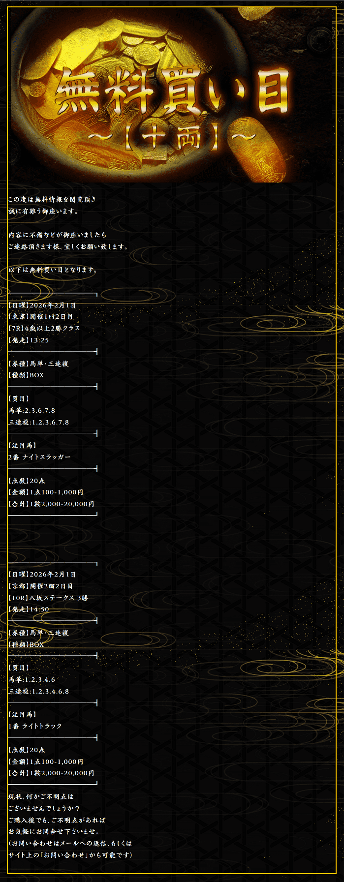 2馬券種無料予想的中!