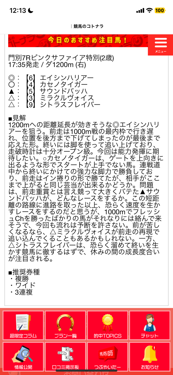 6からの3連複で当たり貰いました! コトナラって予想が見解付きだしかなり当たりますよね!