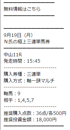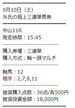 何買おうか迷ってたけどとりあえずN氏の極上三連単馬券の三連単が的中したぜ🎯