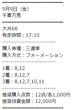 紫苑ステークス堅い決着だったけどしっかり的中貰えて3万4850円ゲット!