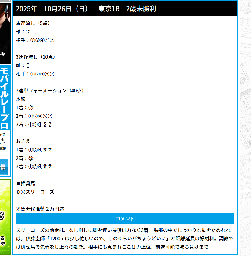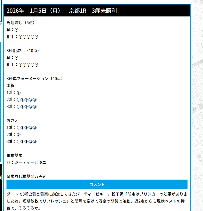 無料予想三連単当たりました!