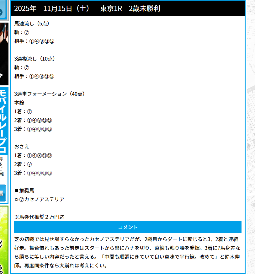 無料情報もいいけどダートマスターも良さそう